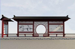 3、沿线附属设施文化主题塑造:将不同的路段文化元素融入道路设计中,并通过在公交站、路灯等附属设施细节设计上得以展现。如:在途径皇藏峪路段的公交站和路灯样式采用汉代风格的样式,以展示宿州浓郁的历史文化风采。