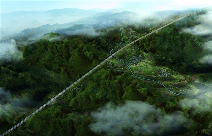 本段落内的桥隧比例较高,设计过程中将“结合自然、利用自然”和“不破坏就是最大的保护”作为基本设计原则,利用结构物结合自然地貌进行布设。在隧道洞口的景观设计,遵循“安全、自然、简单、实用”的原则,洞门形式积极与地形、环境相协调,体现当地文化特色和地域风貌。