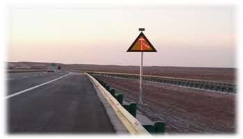(2)太阳能主动发光标志:阿拉善地区日照时间长、太阳能光源丰富,为充分利用此优势,本项目小型标志均采用了太阳能主动发光的模式。