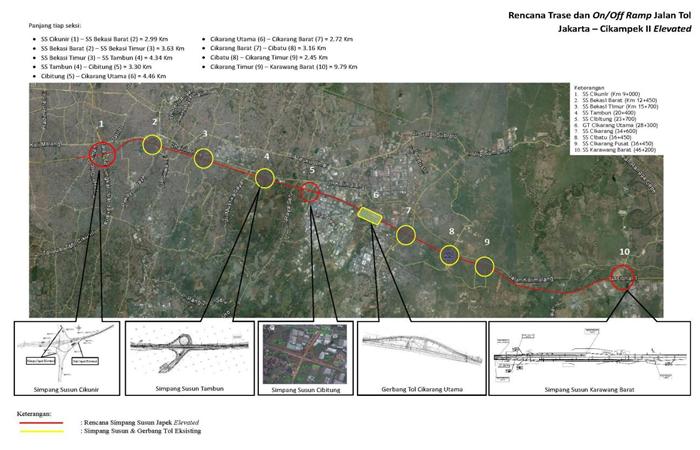 雅加达-芝坎佩高速公路位于印度尼西亚雅加达东部,为雅加达地区通向芝坎佩地区的重要快速通道。雅加达-芝坎佩高架桥工程起点为Cikunir互通,终点为Karawang西互通,全长36.84km。随着当地经济快速发展,现状高速公路的通行能力日趋饱和,亟待进行扩建。基于道路两侧扩建范围有限,设计方案巧妙利用空间布局,采用在高速公路内侧两车道建设高架桥的总体扩建方案。