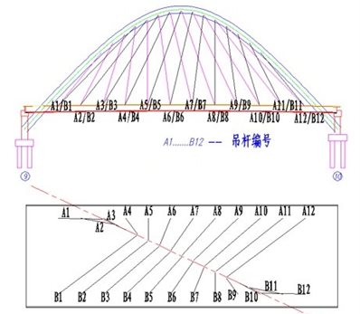 基于本项目总体设计的特点,在调研国内外同类桥型的优缺点基础上,在局部构造设计中,进一步作出创新,包括斜拉式主拱理论拱轴线设计方法、锚拉板式吊杆锚固方法、基于M法的桩拱梁协同受力分析、基于BIM技术的三维正向设计、主拱圈分段式转体施工工艺。