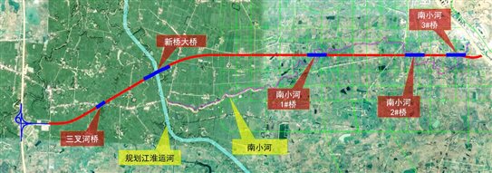 济祁高速三觉互通连接线工程位于淮南市寿县,西接济祁高速三觉互通,横穿新桥国际产业园,东连新桥大道,是新桥国际产业园及沿线乡镇交通出行的重要载体,项目路线全长11.8公里,采用双向六车道一级公路建设标准,总投资约9.8亿,其中特大桥——新桥大桥,为本项目节点工程。项目2017年底完成前期设计工作,2018年初开工建设,2019年底交工验收,目前运营状态良好。