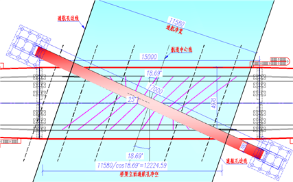 本桥在方案设计阶段进行了多轮汇报,基本确定采用拱桥方案,通过拱形结构形成“门”式造型,以满足本项目作为区域门户的理念。但由于路线与规划航道斜交角度过大,经分析,本桥的主要景观视角为航道行船视角和堤顶行人行车视角,在视角分析的基础上,将拱圈做成斜跨拱,这样就将一座斜桥做成了正桥的效果,从主要视角上来看,主拱效果端正,契合区域发展理念。