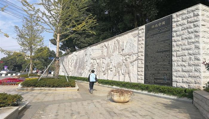5)红色文化广场设计理念。将陵园门口原空地及道路改造后形成的三角形地块,综合打造成街头游园,满足路人短时间的游憩需求。