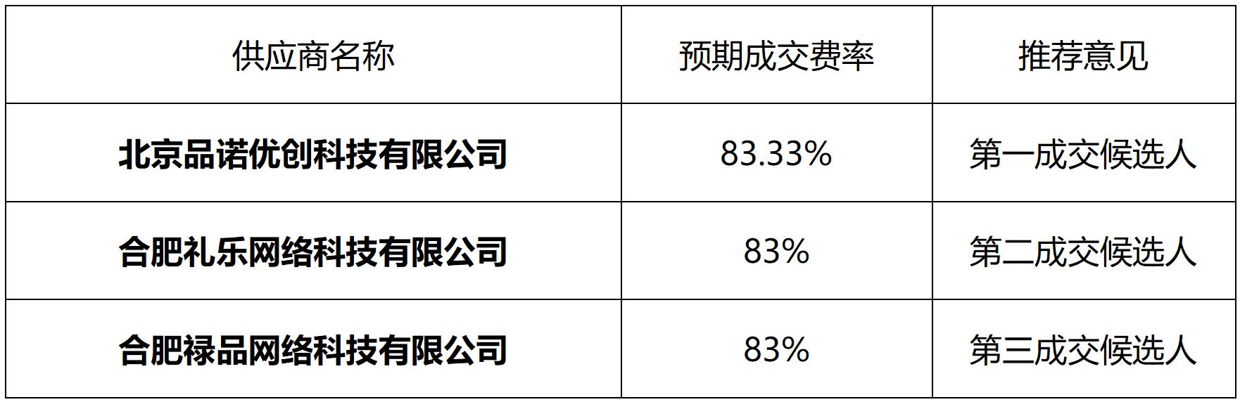 一、2022年度伟德国际victor1946工会会员电影、蛋糕通兑(券)采购项目(采购编号:W-2022-6),于2022年4月7日10时整(北京时间)在安徽省交通规划设计研究总院A1601开标,经评审,现将中标候选人公示如下: